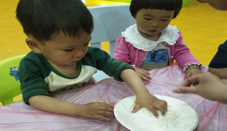 一起来捏捏面粉、尝尝糖粉,这些都没玩过呢