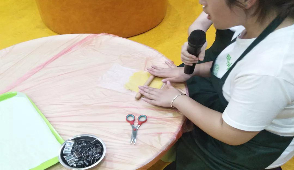 听完老师的讲解,我们穿上小罩衣,开始制作啦!